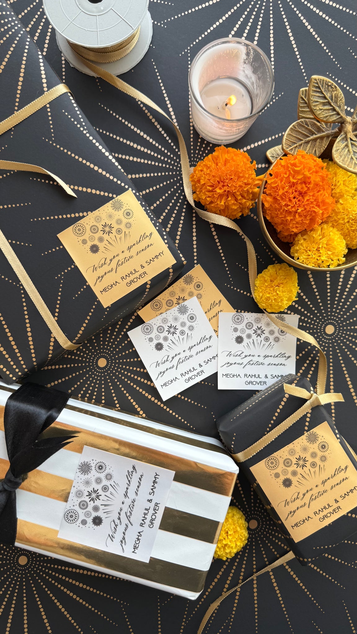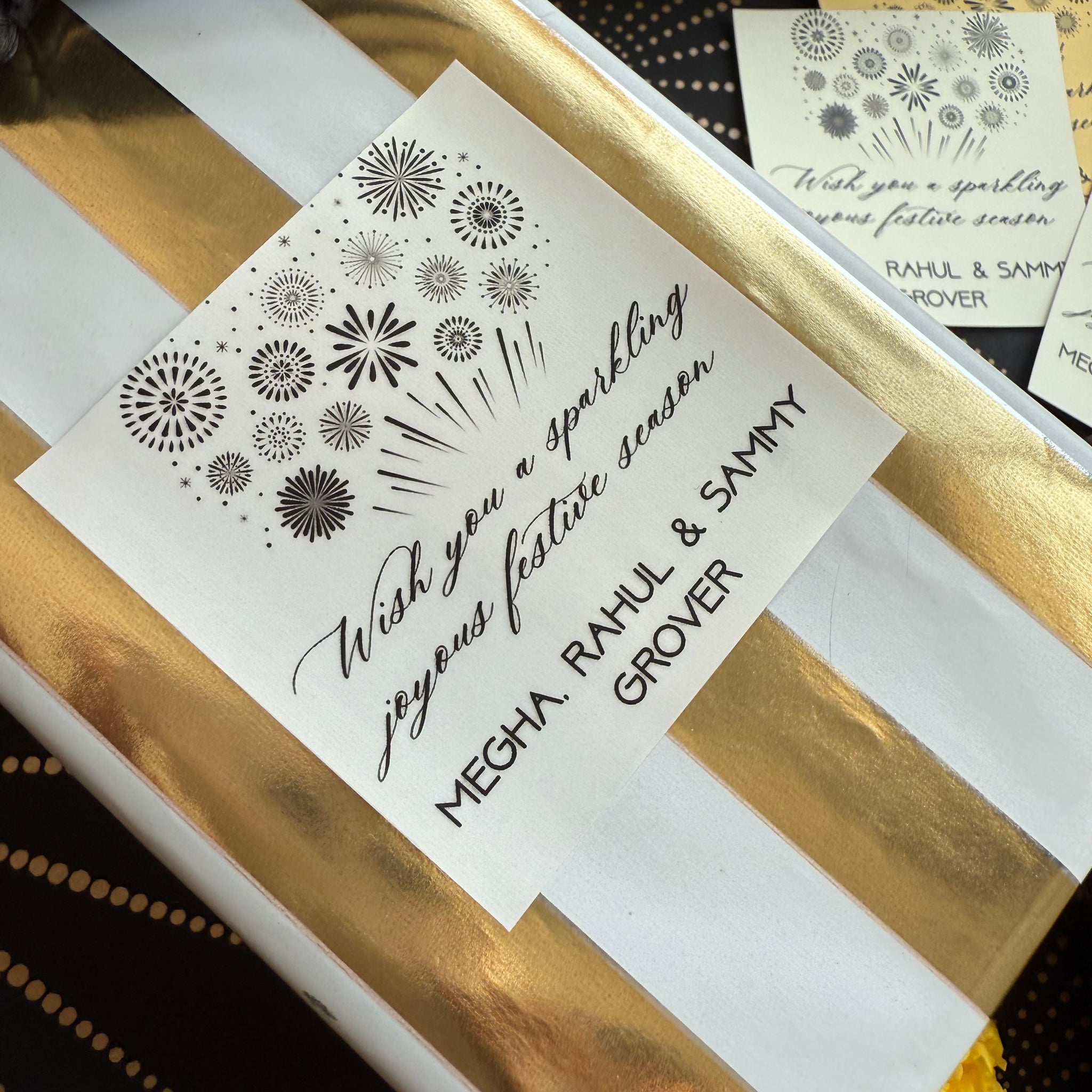 Light up your celebrations with the Sparkling Season gift label, inspired by dazzling fireworks bursting in the night sky. This playful design adds a burst of festive energy to your presents, perfect for brightening the joy of your Diwali nights.