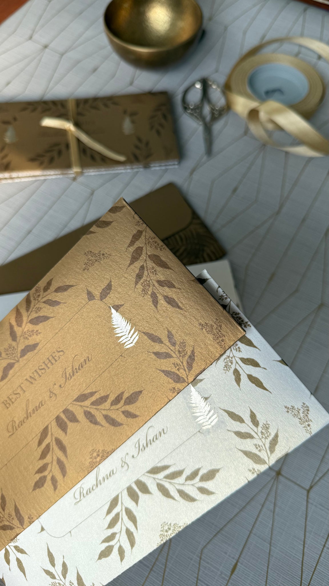 This design is offered in an equal quantity of Gold  & Silver metallic imported papers that stand out in their paper quality, colour and shine.